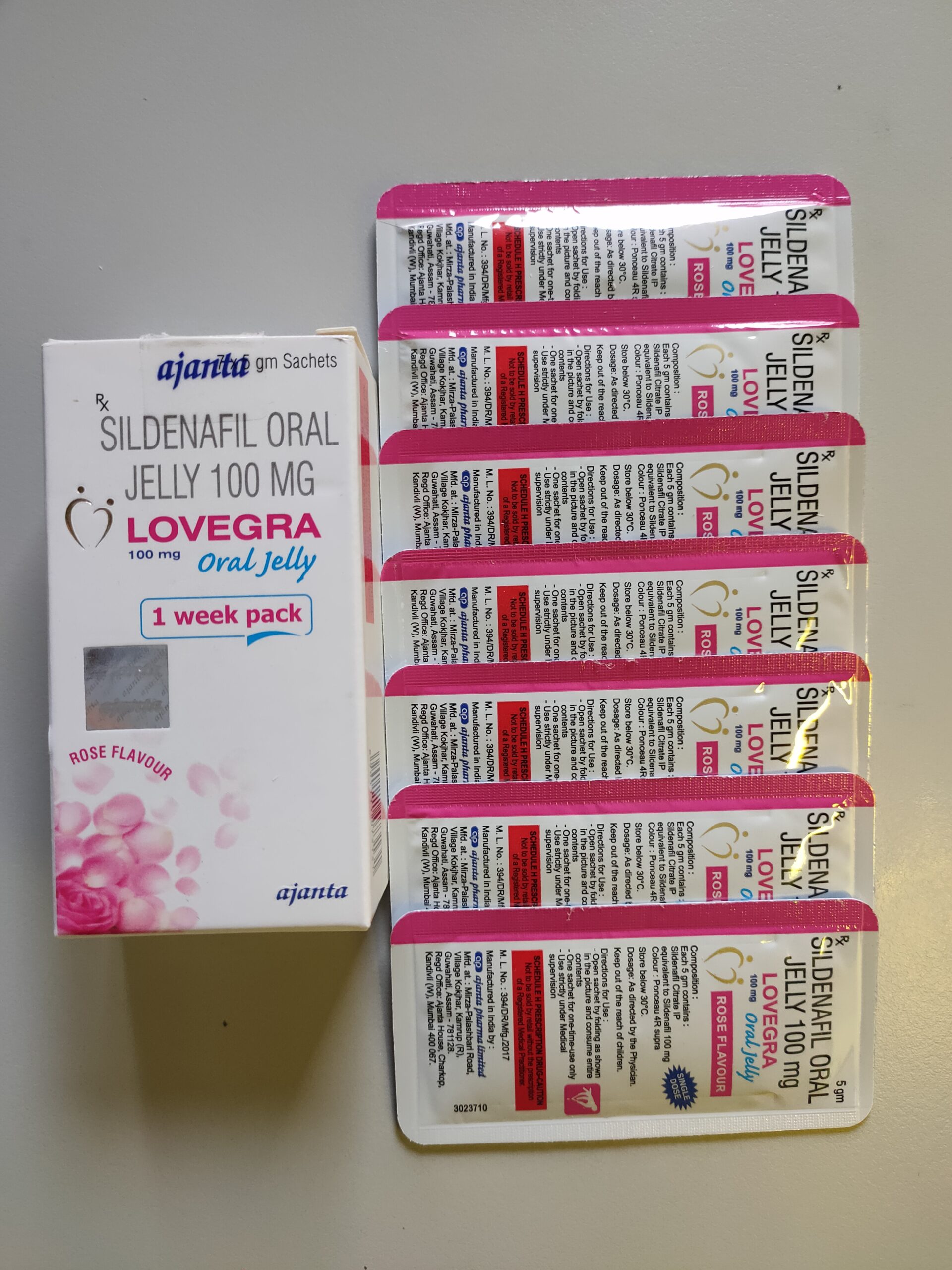 Lovegra果凍是一款由印度Ajanta公司專門為女性開發的果凍凝膠狀女用偉哥。它是粉紅色的,裝在7小包的長方體盒子包裝中。在女性性生活處於艱難的時期,這種產品能很好的恢復女性的性生活。當婦女的生殖器官變得不敏感時,這將會讓女性性生活的出現障礙,以至於女性對性的興趣會開始減少。Lovegra果凍由枸櫞酸西地那非組成,該成分可治療女性性器官的不敏感,增加其敏感度,從而使她們擺脫對性生活的擔心。Lovegra果凍可改善阴道區域的血液供應,從而消除不敏感現象。Lovegra果凍是一種有效的藥物,其作用持續近五個小時。由於包裝是粉紅色,Lovegra果凍也被稱為粉紅色果凍。